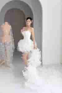 Các mẫu thiết kế váy cưới ngắn đuôi dài
