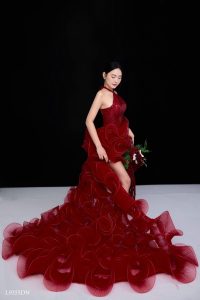 Váy cưới đuôi cá màu đỏ thiết kế xếp tầng là sự lựa chọn cho những cô dâu muốn tỏa sáng rực rỡ với vẻ đẹp kiêu sa và đầy nữ tính trong ngày trọng đại. Kiểu dáng này không chỉ tôn lên đường cong cơ thể một cách tinh tế mà còn mang đến sự bồng bềnh,