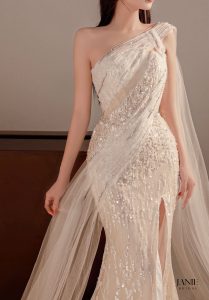Janie Bridal luôn chú trọng đến chất lượng váy cưới, sử dụng chất liệu cao cấp, nhập khẩu từ các thương hiệu uy tín trên thế giới. Nhờ vậy, những chiếc váy cưới xẻ tà của Li Ann Bridal luôn mềm mại, nhẹ nhàng, tạo cảm giác thoải mái khi di chuyển cho cô dâu.